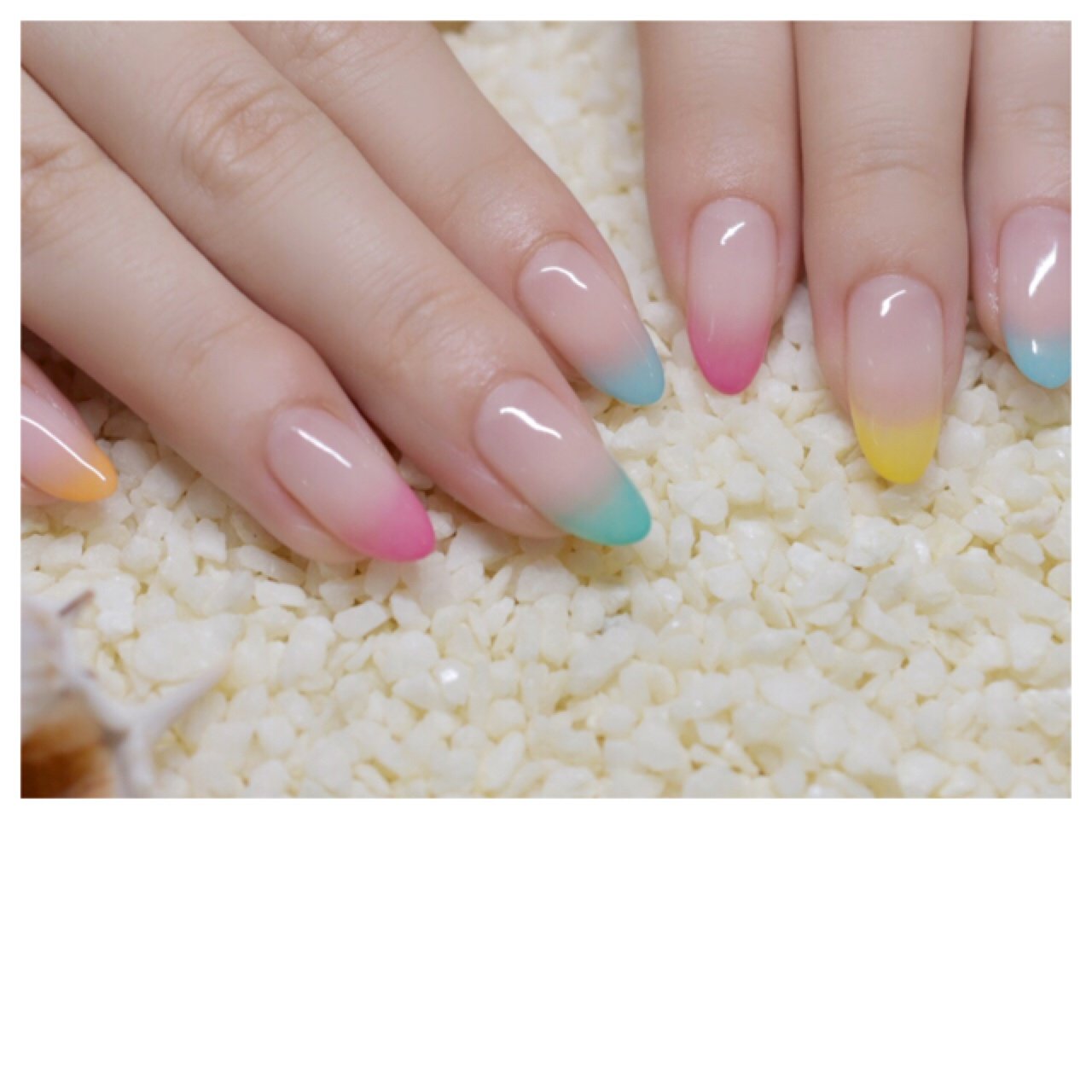 夏を意識してシェル 金箔のグラデネイル カラー カット レンレンのひとりごと