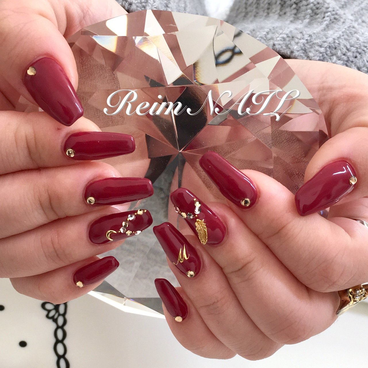 ボルドー 赤茶 ミラーアート ネイリスト ネイル チップ オーダー つけ爪 ジェル Rkmn リ カマ ナ 所属 前川 奈未の ネイルデザイン ミニモ